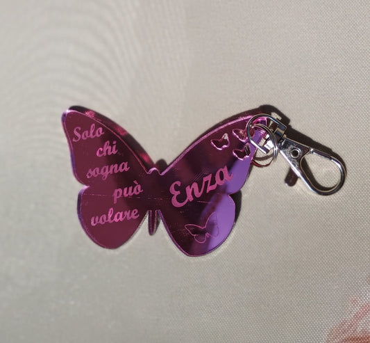 PORTACHIAVI FARFALLA ROSA SPECCHIO