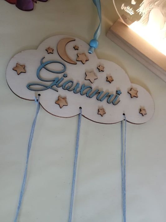 ACCHIAPPASOGNI NUVOLA PERSONALIZZATO AZZURRO IN LEGNO
