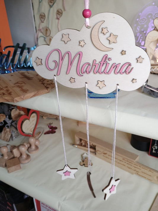 ACCHIAPPASOGNI NUVOLA PERSONALIZZATO ROSA IN LEGNO