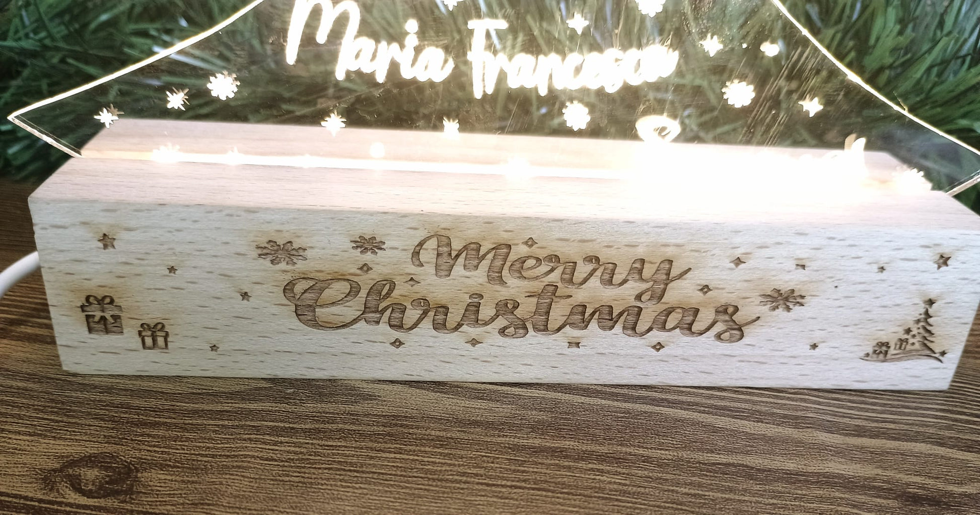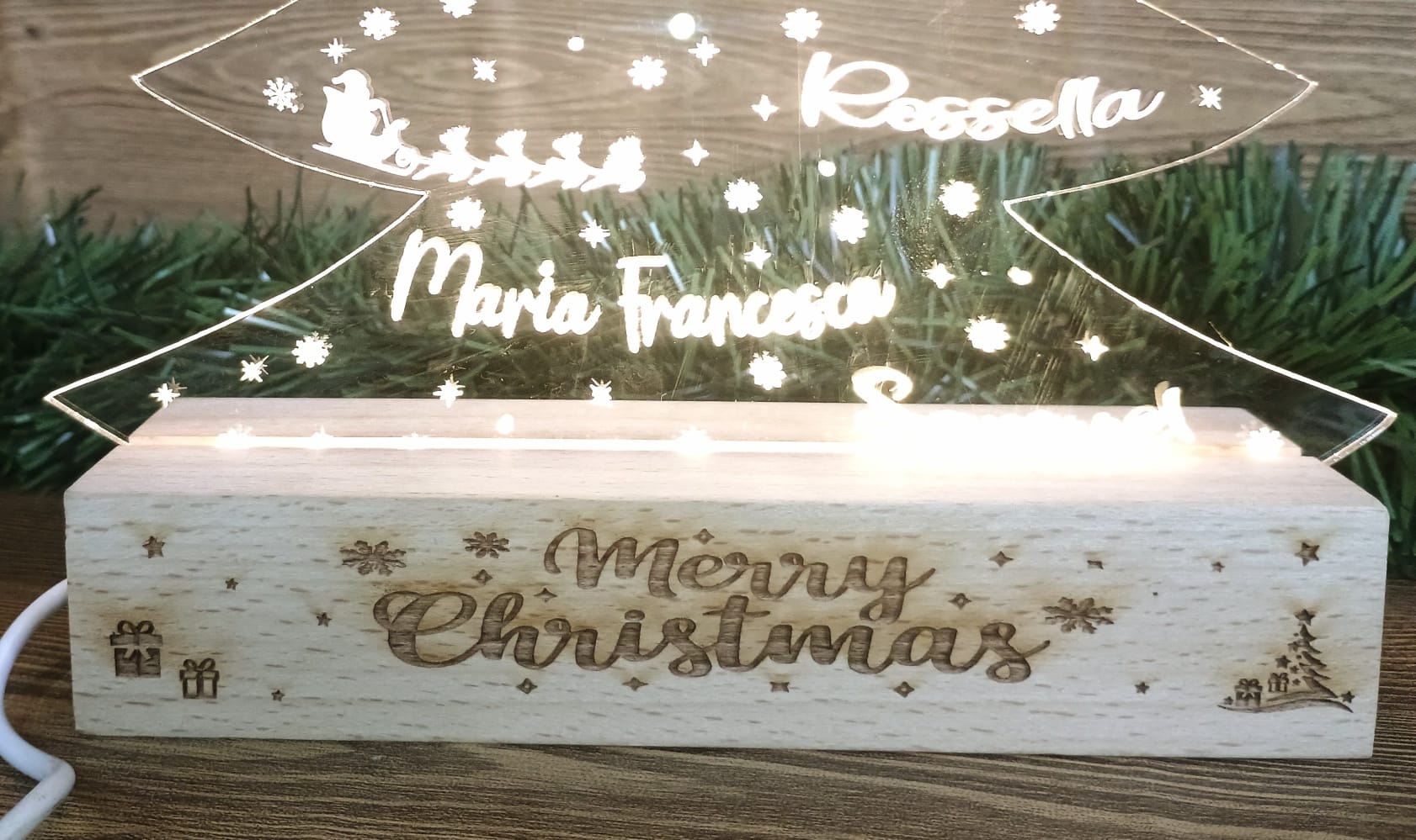 Lampada Albero Di Natale con Nomi incisi e base legno personalizzata