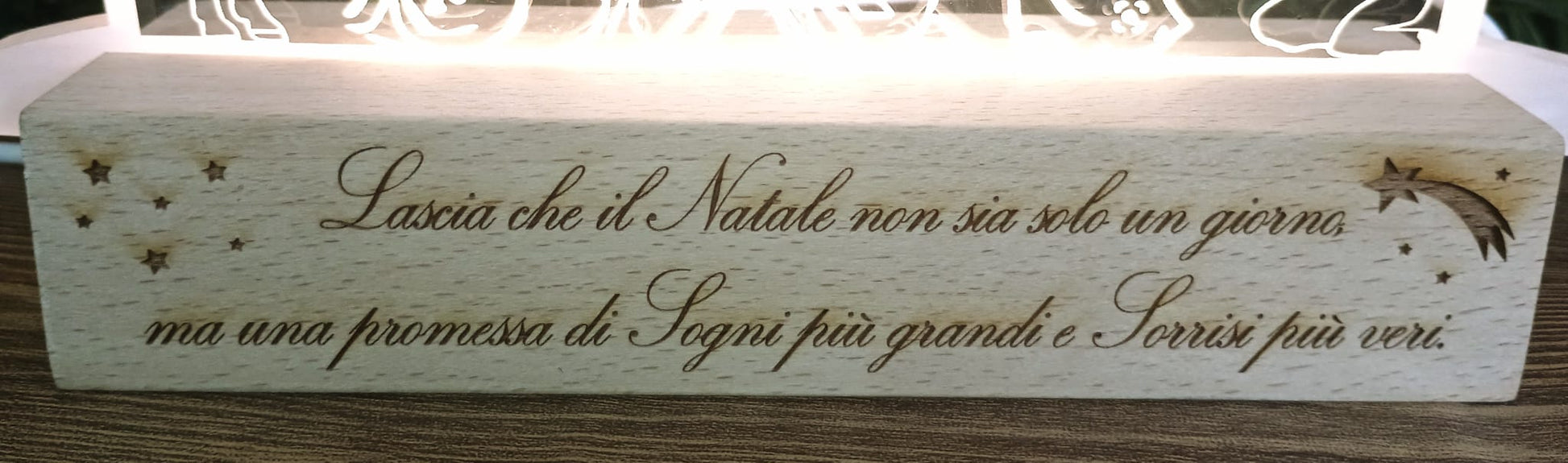 BASE LED IN LEGNO PERSONALIZZATA CON INCISIONE LASER DI NOMI E/O DEDICA